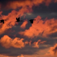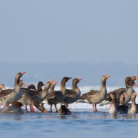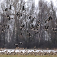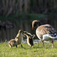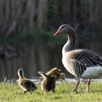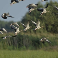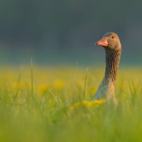 P.S.: W Polsce żyje dzisiaj około 3 tys. par Gęgawy. Być może nasz najbardziej płochliwy gatunek. Święty ptak naszych przodków, został niemal eksterminowany w połowie XX wieku. Na szczęście(!) – w ciągu ostatnich dziesięcioleci, powoli, ale powraca. Przynajmniej tam, gdzie jeszcze zostało trochę spokoju oraz wody, trzcin i mokrych łąk dookoła. Jesienią dołączają do nich kuzyni z Dalekiej Północy i Syberii – Gęsi Białoczelne i Zbożowe. Wówczas wielkie klucze tych wytrwałych wędrowców przesuwają się wysoko nad naszymi głowami. Zanim ich tam wypatrzymy – na pewno usłyszymy – gdy całe rodziny, przyjaciele, znajomi a nawet obcy krzyczą do siebie, dodając sobie odwagi na kolejne setki i tysiące kilometrów. Głos Bogów. Dowód, że Ziemia jeszcze żyje. I chyba nie ma człowieka, którego nie poruszyłby ten widok – ten głos. Szacunek!