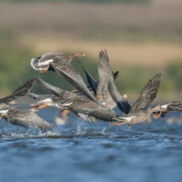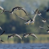 W Parku Narodowym „Ujście Warty” olbrzymie stada tworzą razem gęsi zbożowe i białoczelne.