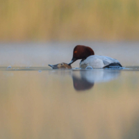 Głowienka jest kaczką nurkującą, czyli tzw. grążycą. Pływając, głęboko zanurza się w wodzie nawet do 2,5 metrów. Na dnie zbiorników wodnych wyszukuje jedzenie – zarówno wodne rośliny, jak i drobne wodne zwierzęta – ślimaki, małże, a także larwy owadów.